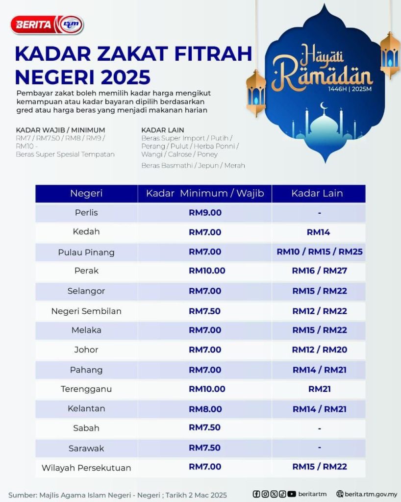 KADAR FITRAH BAGI SETIAP DI NEGERI DI MALAYSIA BAGI TAHUN 1442H (2021) HINGGA 1446H (2025) Amanah Ummah Dijaga, Hak Asnaf Dibela