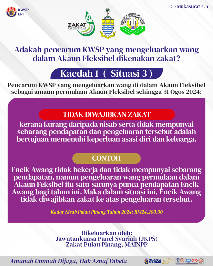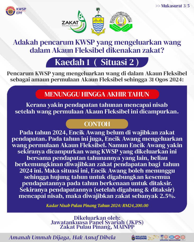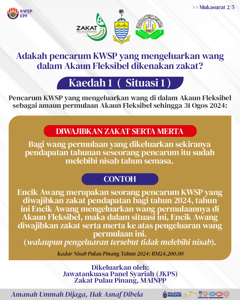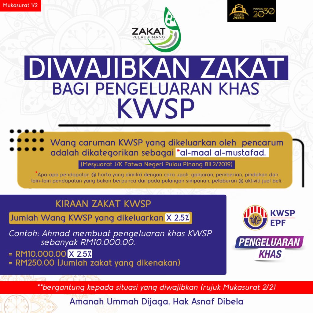 Jumlah wang KWSP yang dikeluarkan x 2.5% = Zakat yang perlu dibayar